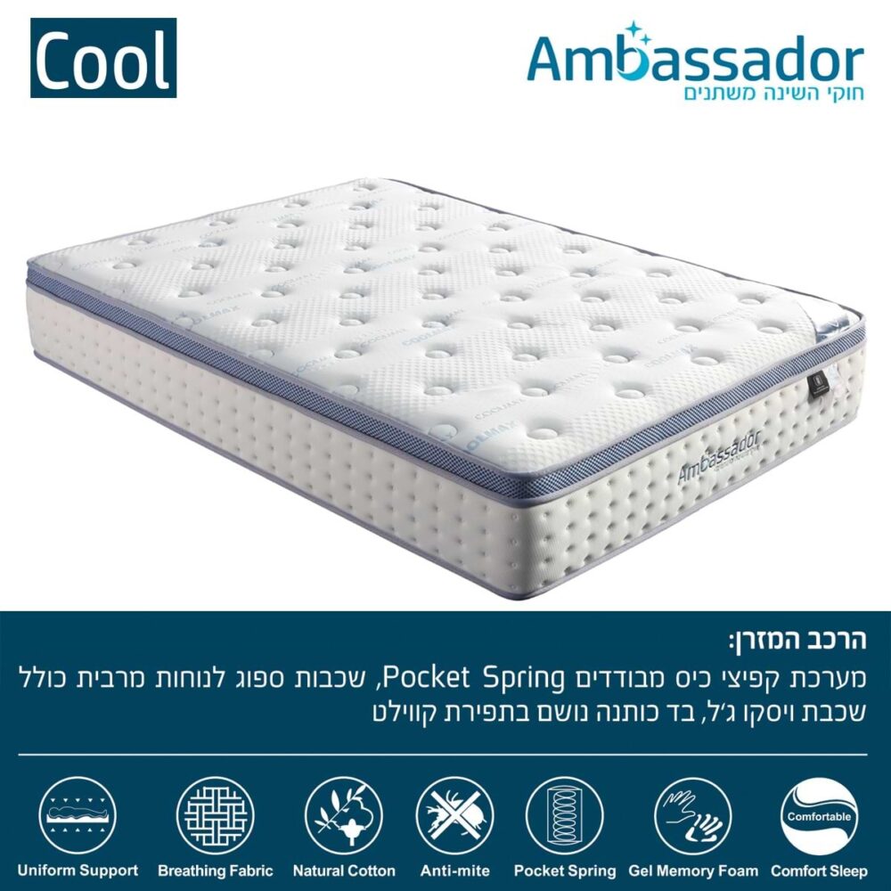 מזרן קפיצים מבודדים 120×190 עם שכבת ויסקו ג'ל ואפקט קירור AMBASSADOR דגם קול