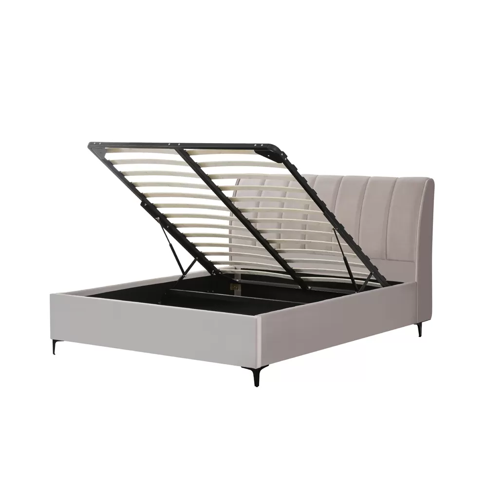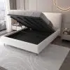 מיטה זוגית מעוצבת 140×190 בריפוד בד רחיץ עם ארגז מצעים מעץ דגם גרנדה – קרם