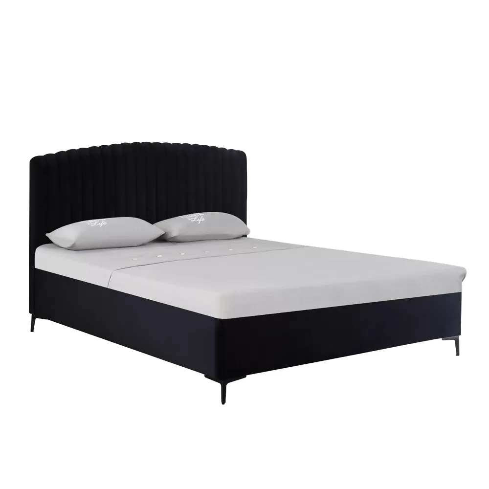 מיטה זוגית מעוצבת 140×190 בריפוד בד רחיץ עם ארגז מצעים מעץ דגם קינג – שחור