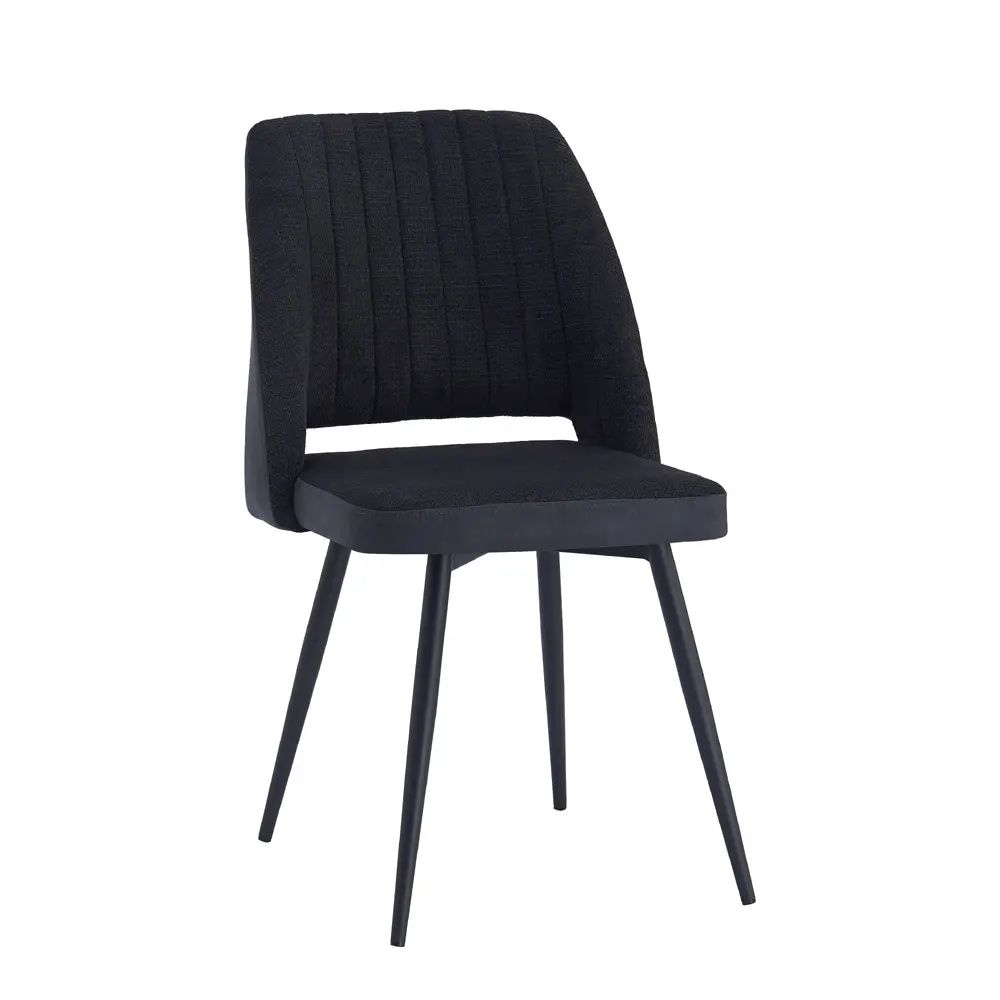זוג כיסאות מעוצבים לפינת אוכל מרופדים בד דגם פלג – שחור