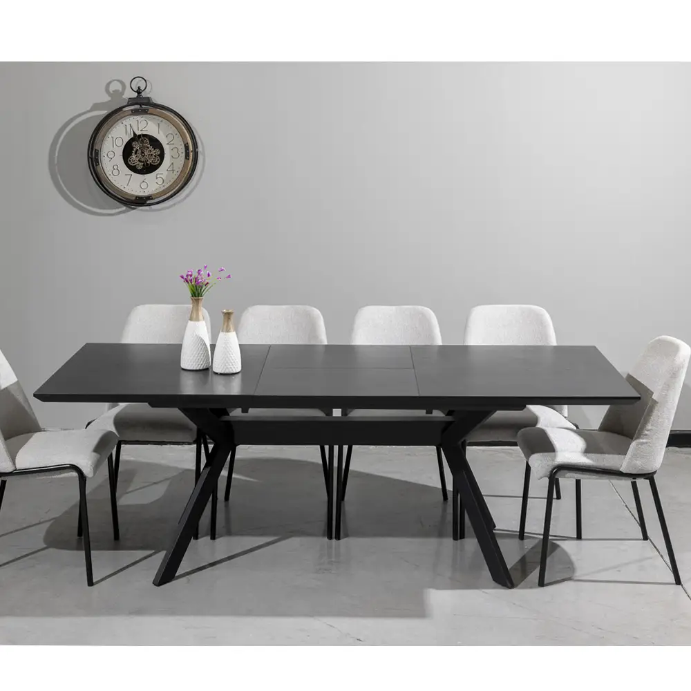 שולחן אוכל נפתח 1.6-2.2 מ’ עם רגלי ברזל דגם טוסקנה-שחור