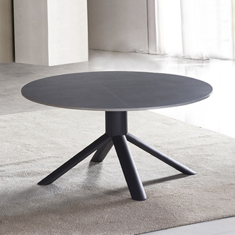 שולחן סלון קרמיקה עגול 90 ס"מ עם רגלי ברזל דגם זאוס-אפור