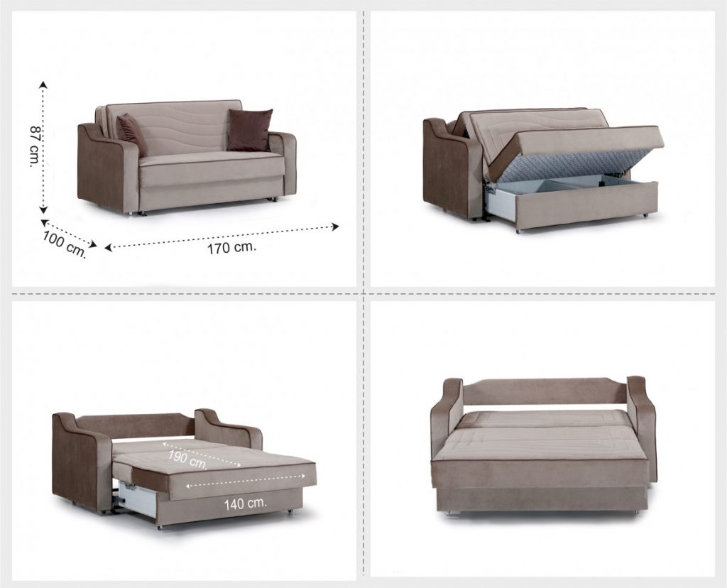 מידות הספה: רוחב – 170 ס"מ, עומק: 100 ס"מ,