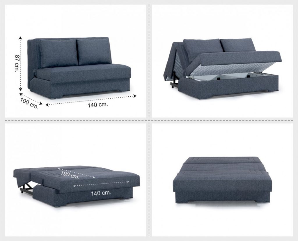 מידות הספה: רוחב – 140 ס"מ, עומק: 100 ס"מ,