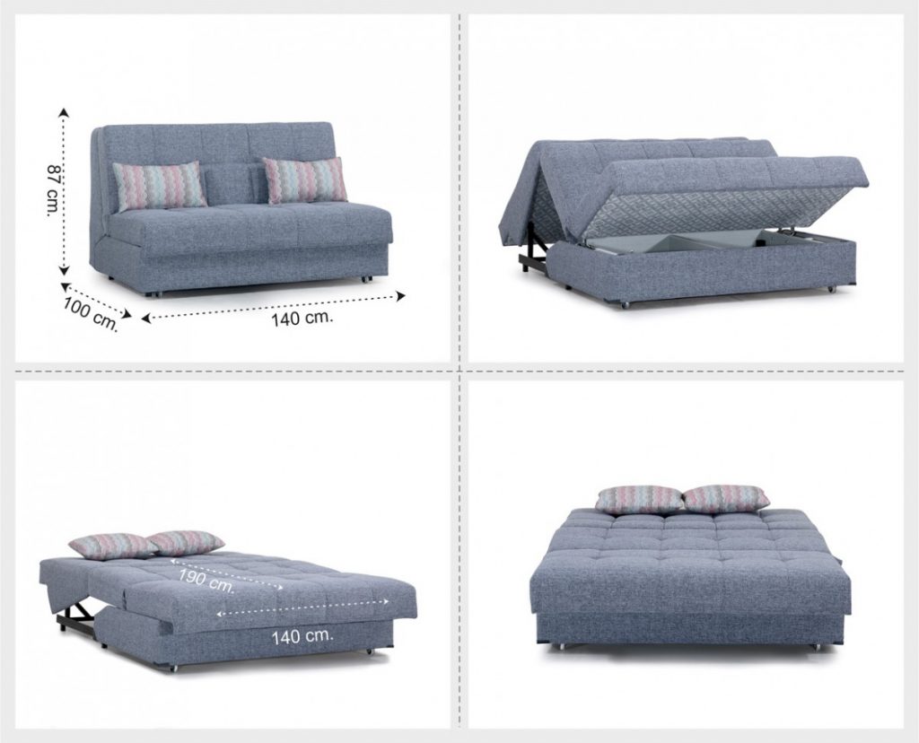 משטח השינה: 190 על 140 ס"מ במצב פתוח.