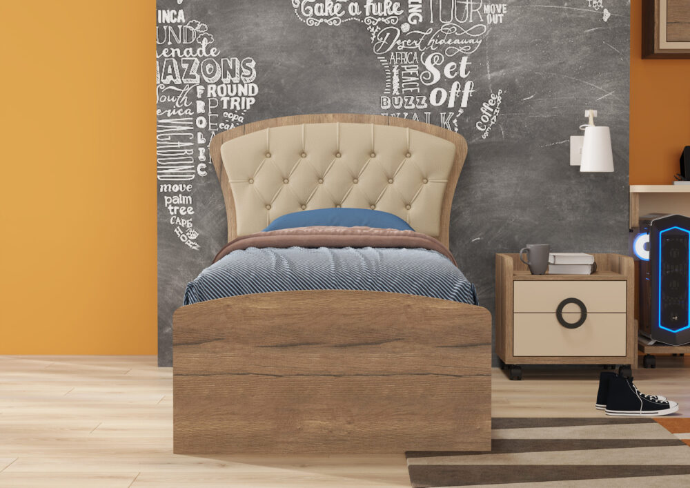 מיטה: גובה ראש מיטה 110 ס”מ , רוחב 100 ס”מ , אורך 202 ס”מ – מותאם למידת מזרן 80*190 ס”מ.