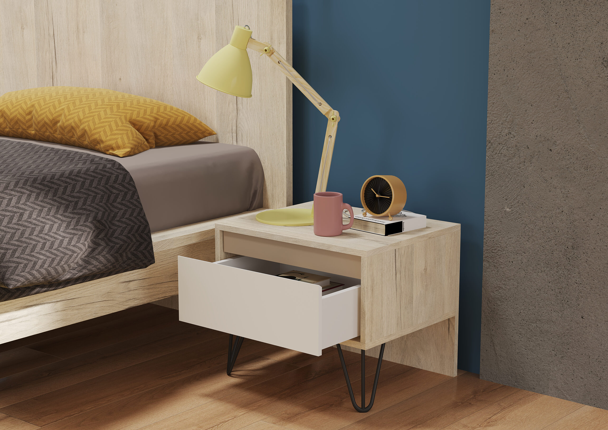 שידה ליד המיטה: גובה 37 ס”מ , רוחב 49 ס”מ , עומק 40 ס”מ.