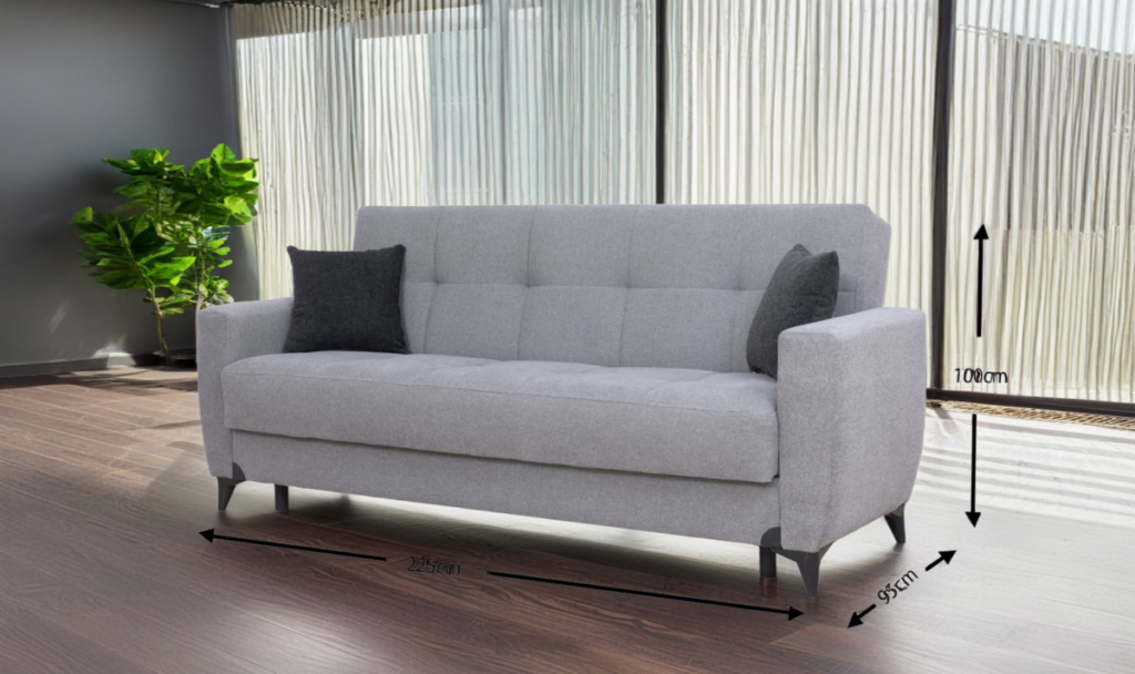 מידות הספה: רוחב – 230 ס"מ, עומק: 90 ס"מ,