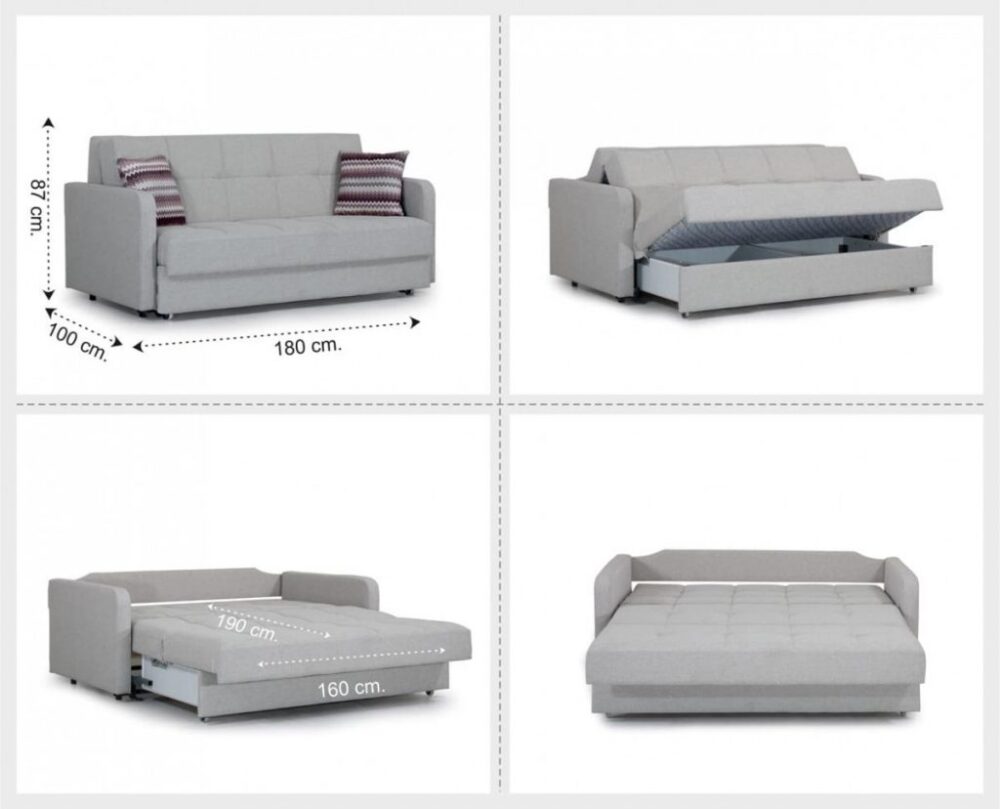 לספה קיים ארגז מצעים לאחסון והמושב מורכב מקפיצים וספוגים HR הנותנים תחושת ישיבה רכה ונוחה