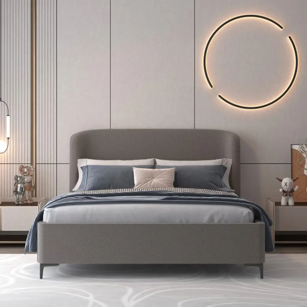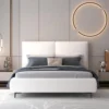 מיטה זוגית מרופדת עם בסיס עץ מלא בעיצוב מודרני