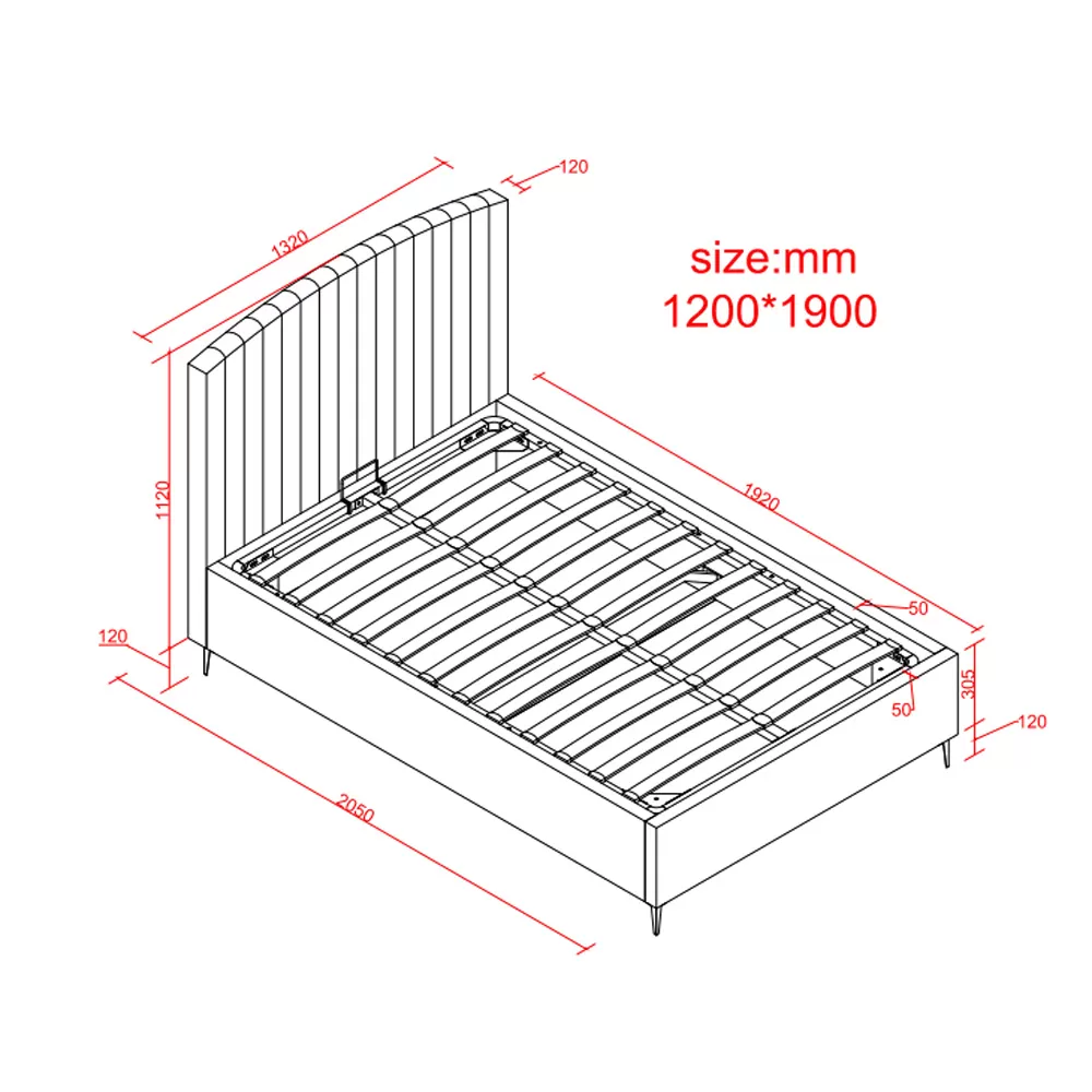 רגלי ברזל גבוהות, מאפשרות ניקוי הרצפה שמתחת למיטה.