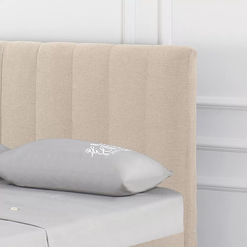 ריפוד בד פוליאסטר רחיץ נעים מאוד למגע בכל החלקים הגלויים, כולל בראש המיטה