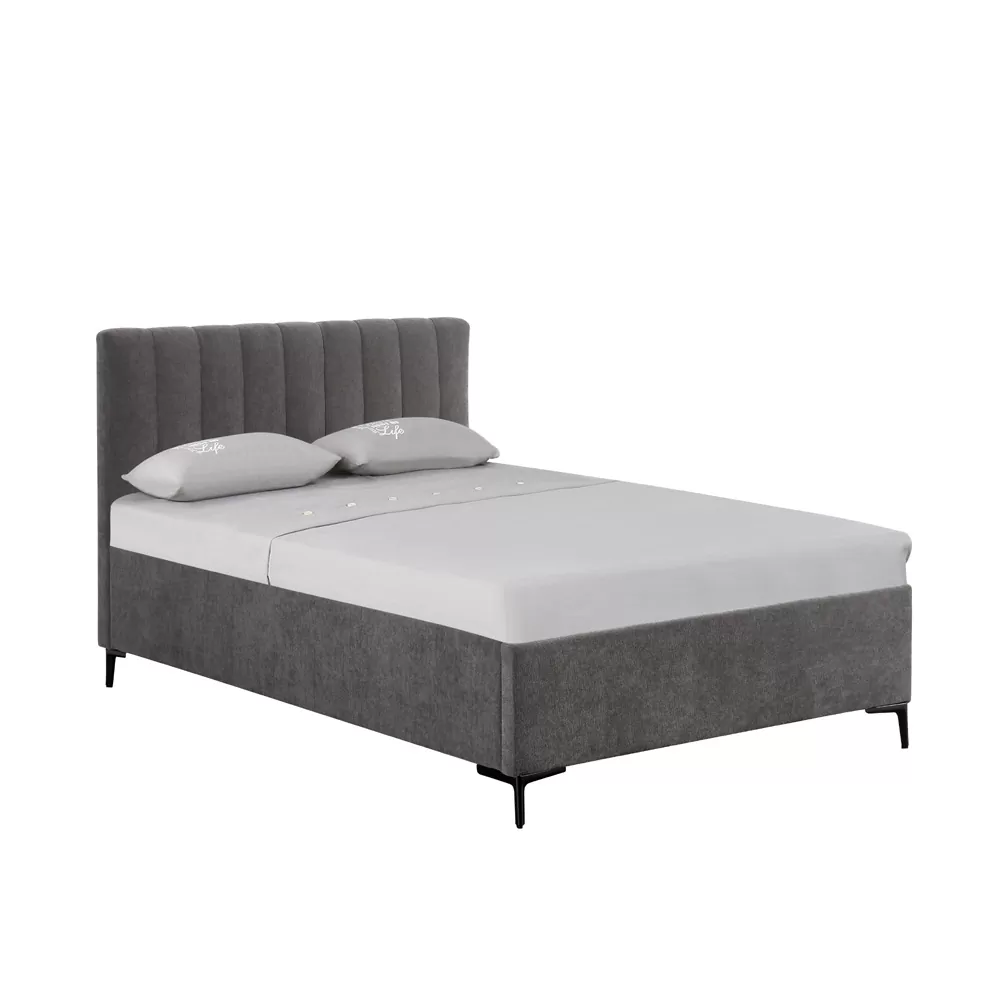 מיטה זוגית מרופדת עם בסיס עץ מלא בעיצוב מודרני