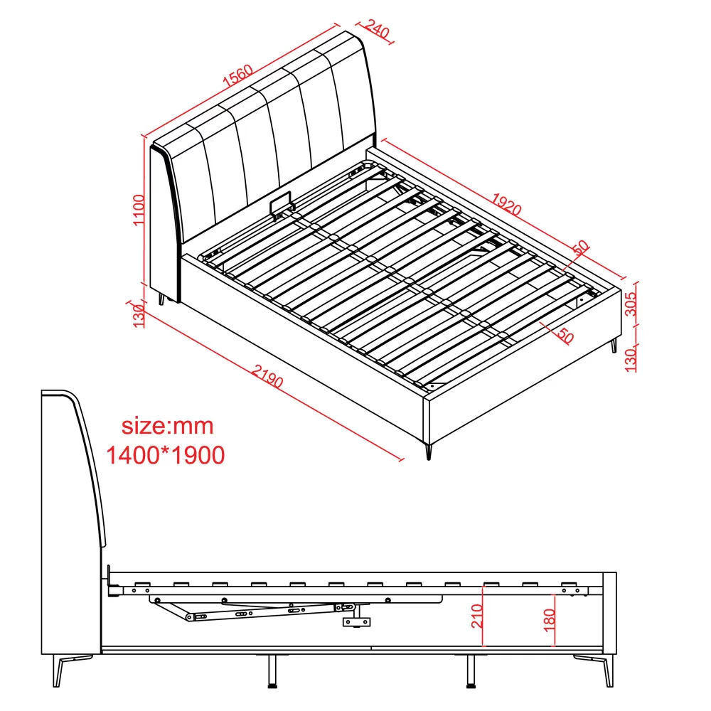 מיטה זוגית מעוצבת 160/200 בריפוד בד רחיץ עם ארגז מצעים מעץ דגם אלי