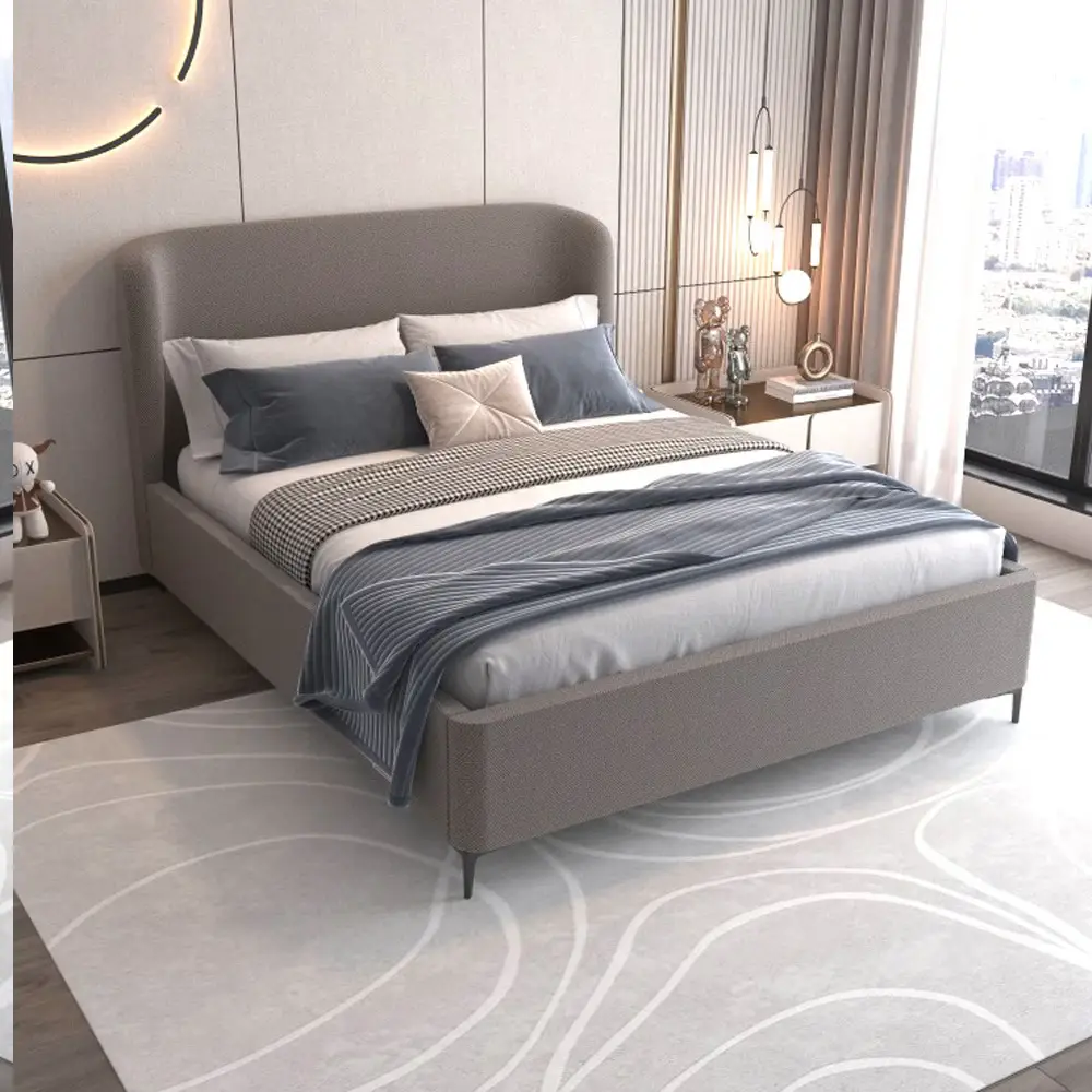 מיטה זוגית מרופדת עם בסיס עץ מלא בעיצוב מודרני