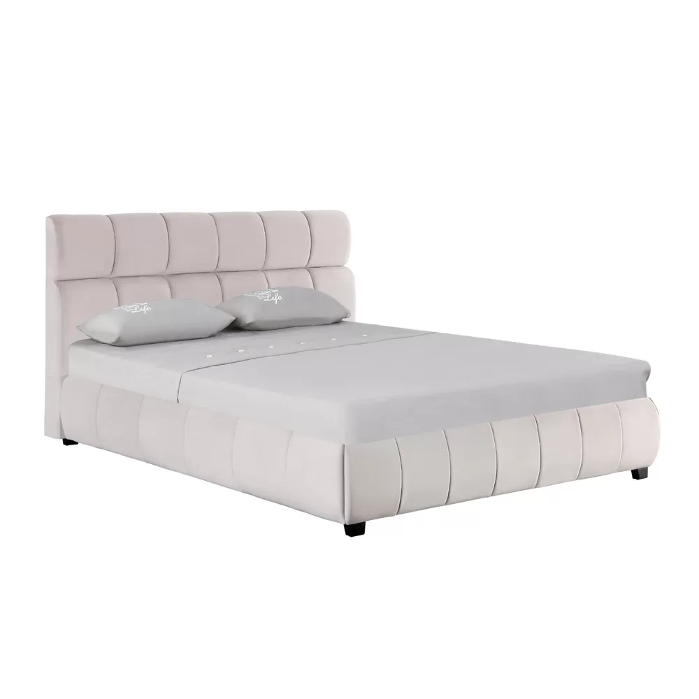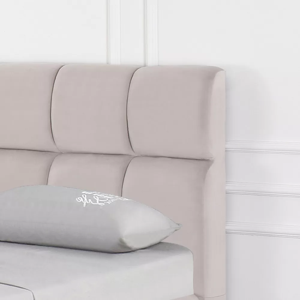 ריפוד בד פוליאסטר קטיפתי רחיץ נעים מאוד למגע בכל החלקים הגלויים, כולל בראש המיטה