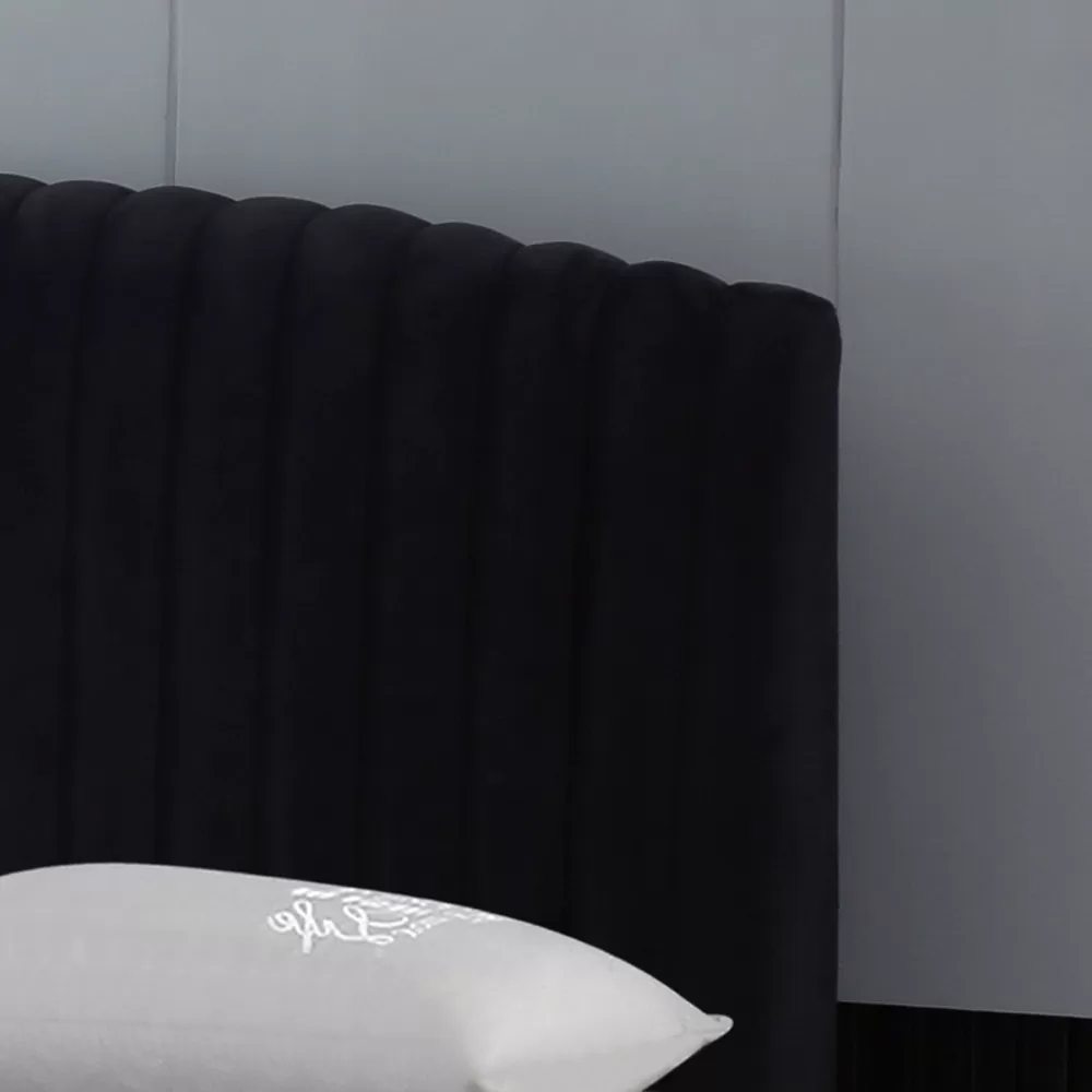 ראש מיטה מרופד ומעוגל בחלקו העליון, בעובי 12 ס"מ, עם תפרי נוי קאפיטונאז' אנכיים
