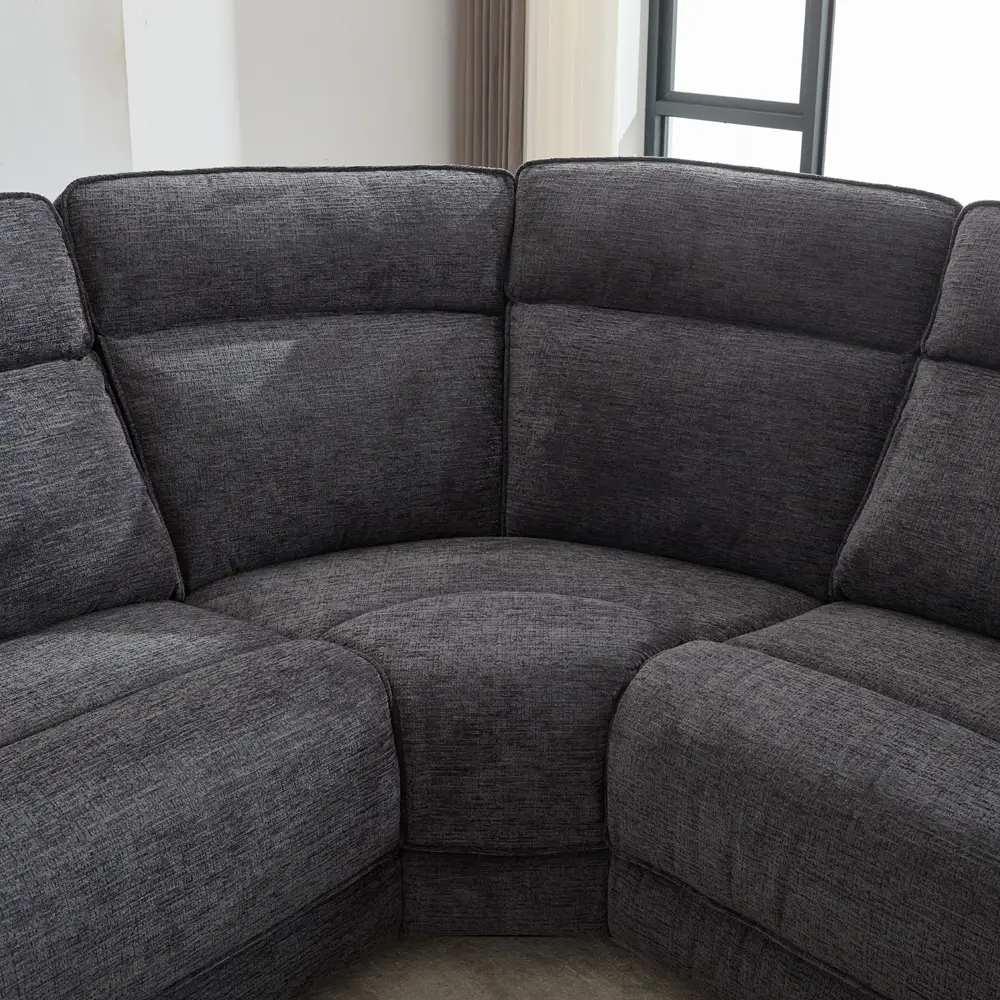 מערכת ישיבה פינתית מפנקת עם ריקליינרים ובר מרופדת בד רחיץ דגם קלאס-פחם