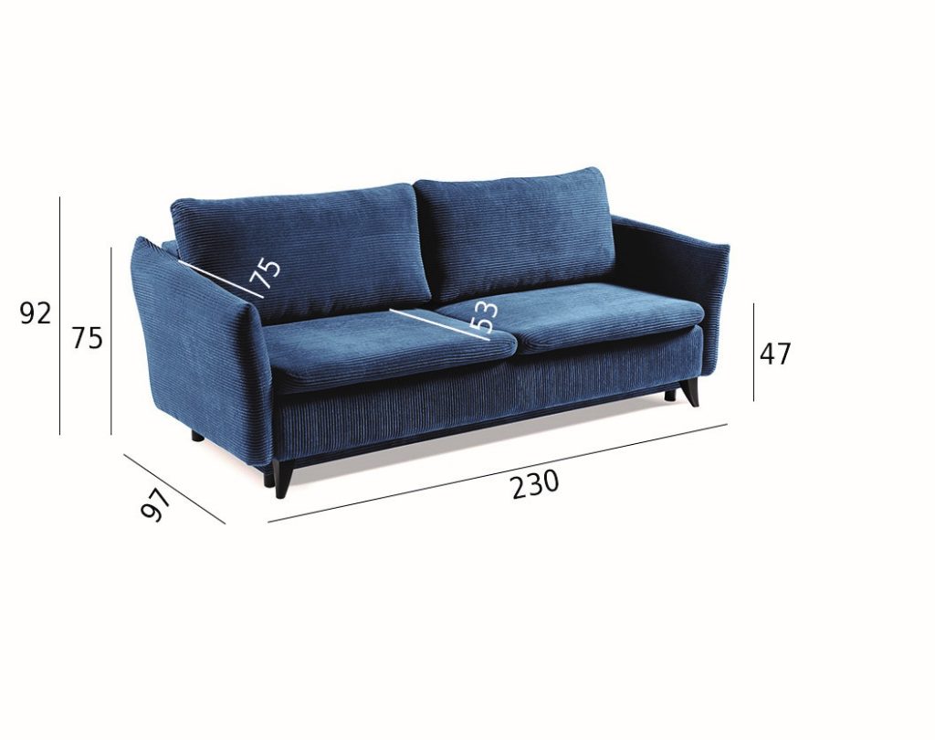ספה: רוחב – 230 ס"מ, עומק – 97 ס"מ, גובה – 92 ס"מ