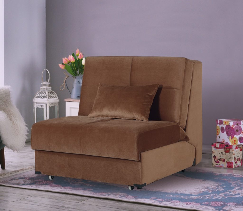 הספה מכילה ארגז מצעים, ומגיעה עם כריות נוי.