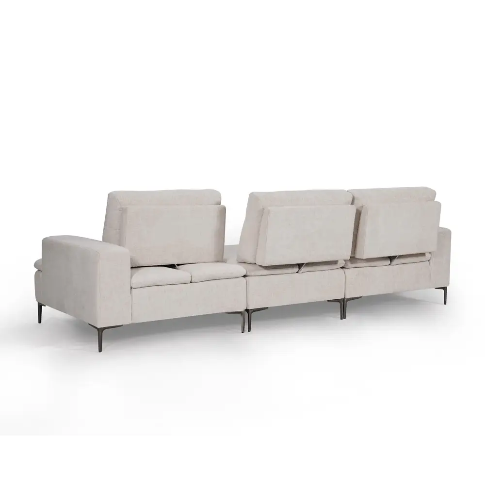 הספה רחבה במיוחד, 3 מטר, וכוללת משענות גב מתכווננות אחורה וקדימה לקבלת 2 סוגי ישיבה: ישיבה נוחה או רביצה עמוקה.