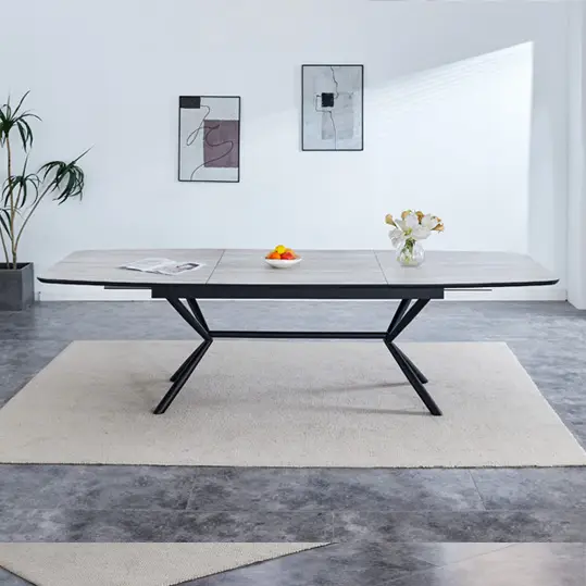 השולחן באורך 180 ס"מ, נפתח לאורך 270 ס"מ, יכול להכיל עד 12 סועדים.